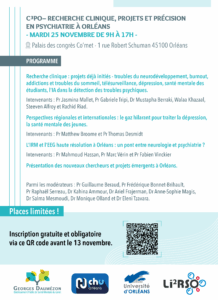 The University Hospital of Orléans (CHU d’Orléans), the Loiret Psychiatric Hospital (EPSM du Loiret), and the Health Research Laboratory LI2RSO of the University of Orléans invite you to the first Clinical Research, Projects, and Precision in Psychiatry of Orléans Day — C3PO.