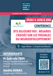 Dans le cadre des Journées intercommunales du handicap, l’EPSM du Loiret vous inviter à une conférence ouverte à tous, dédiée aux troubles DYS et plus largement aux troubles du neurodéveloppement.